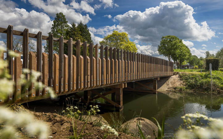 De realisatie van de nieuwe voet-fietsbrug RecreatieBrug door Meerdink Bruggen is in volle gang. Het kunstwerk, ontworpen door Arc2, is een volledig circulaire brug dat naast verbinding straks ook een verblijfsplek vormt in een mooie groene wereld.