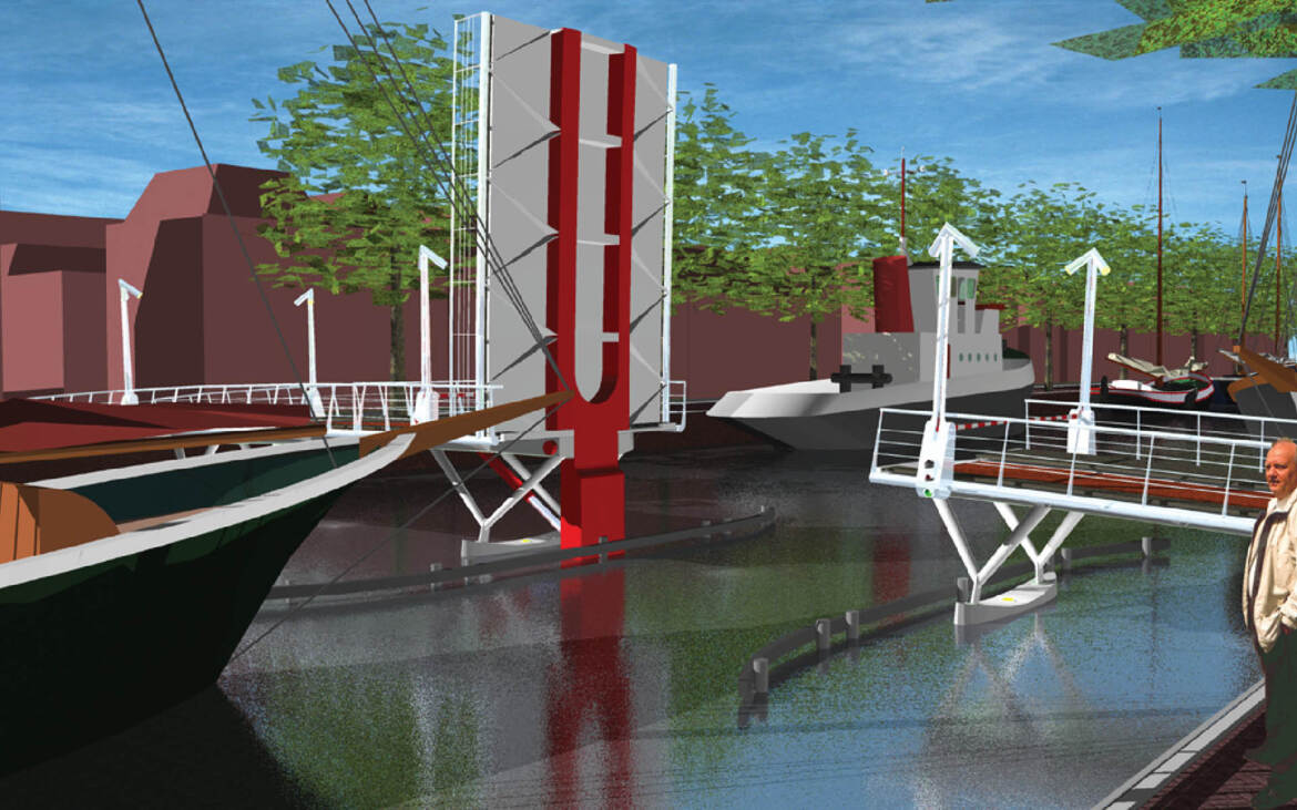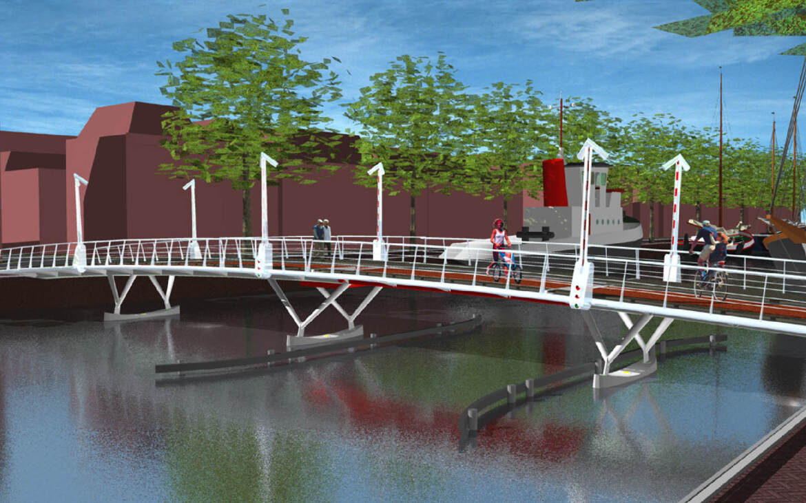 Naast de Museumhaven in Leeuwarden is een beweegbare brug voor voetgangers en fietsers gepland. Er is een ranke brug ontworpen met een beweegbaar gedeelte in de vorm van een bascule. In gesloten toestand is de brug onopvallend aanwezig en is er maximaal zicht op de historische schepen. Als de brug geopend wordt komt de bascule met contragewicht prominent in beeld.
