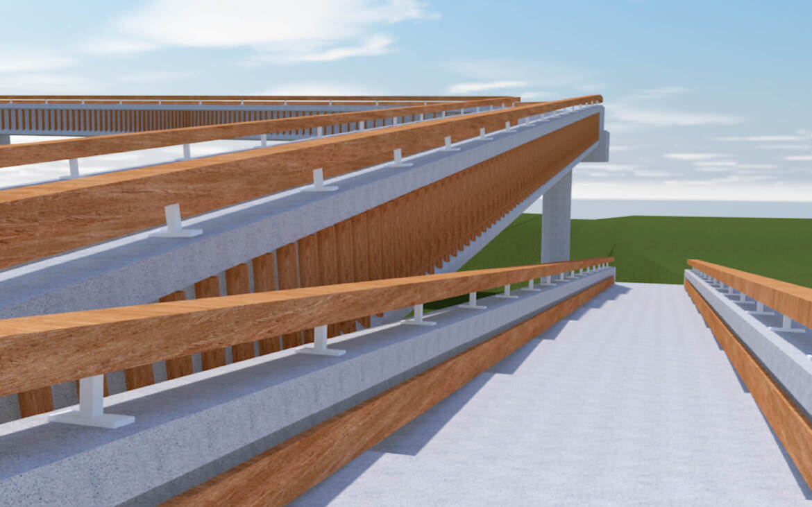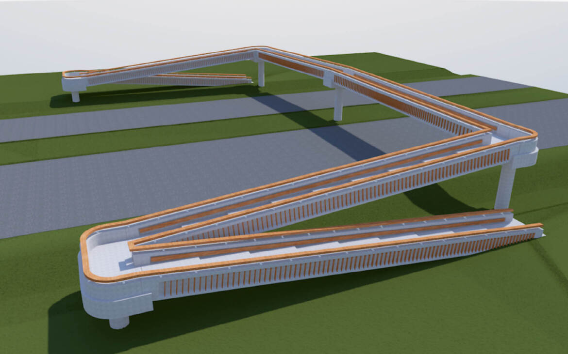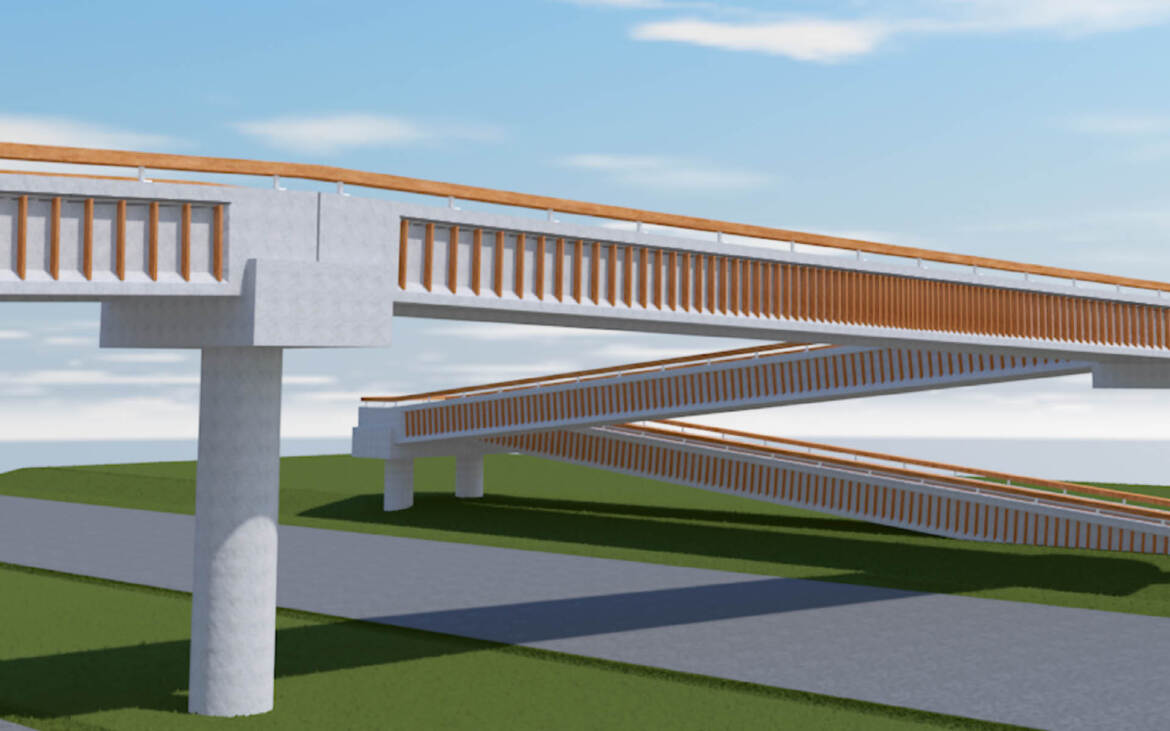 In samenwerking met Dura Vermeer is een concept ontwikkeld om een bestaand kunstwerk, een fiets- voetganger viaduct over de A27, een tweede leven te geven. De brug wordt in delen gedemonteerd en op een andere locatie weer opgebouwd. In het plan krijgt het kunstwerk een architectonische upgrade. De huidge brug bestaat voornamelijk uit prefab betonnen onderdelen. Door een invulling met hergebruikt hardhout wordt de uitstraling van de brug eleganter, de lamellen zorgen voor een dynamisch aanzicht. De hardhouten leuning geeft de brug een verfijnde detaillering. Het brugdek wordt in de avonduren aangelicht door LED-lichtlijnen welke zijn aangebracht achter een doorlopende FSC houten knieregel. In deze circulaire toepassing krijgt de brug een langere levenscyclus: een tweede leven.