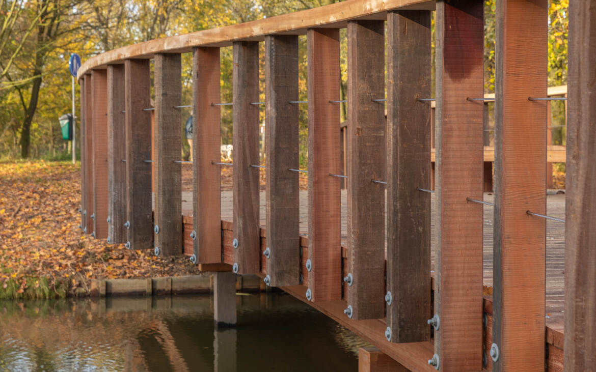 Arc2 architectuur heeft in samenwerking met Meerdink Bruggen een ontwerp gemaakt voor een drietal circulaire bruggen in Nijmegen. De nieuwe bruggen vervingen drie bestaande bruggen. Het Azobe hout uit de bestaande bruggen is op zorgvuldige wijze geoogst om het materiaal te kunnen hergebruiken in de nieuwe ontwerpen. De bruggen zijn geplaatst op de huidige locaties. Het hergebruikte hout is verzaagd naar de nieuwe profilering waardoor er een mooi contrast is ontstaan tussen het verweerde hout en de zaagsnede. De dekdelen van de bruggen bestaan uit hergebruikt materiaal afkomstig uit damwanden, onbehandeld zonder loopdekprofiel. Voor de grondkerende constructies in de landhoofden zijn schanskorven toegepast, deze zijn gevuld met hergebruikt bestratingsmateriaal.