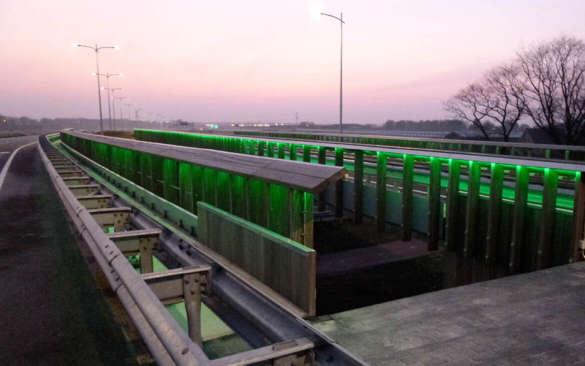 Het bijzondere ontwerp van de viaducten geeft de provinciale weg een eigen identiteit. Automobilisten kunnen zo goed herkennen waar ze zijn. “Apart zijn bijvoorbeeld de brugdekondersteuningen die van breed naar smal verlopen. Deze rechte en schuine 'boomstammen' onder de brugdekken komen in diverse kunstwerken terug”, zegt De Jong. “De houten staanders van de hekwerken langs het wegdek van de kunstwerken variëren in afstand; boven de rijbanen is de concentratie hoger. Dit geeft een speels ruimtelijk effect. Speciale ledverlichting in de brugleuningen zorgt 's avonds voor een groene zacht schijnsel langs de brugrand; eveneens een bijzonderheid in de brugarchitectuur. De weg vormt zo een mooie groene loper voor Greenport Venlo en de Floriade van 2012! ”