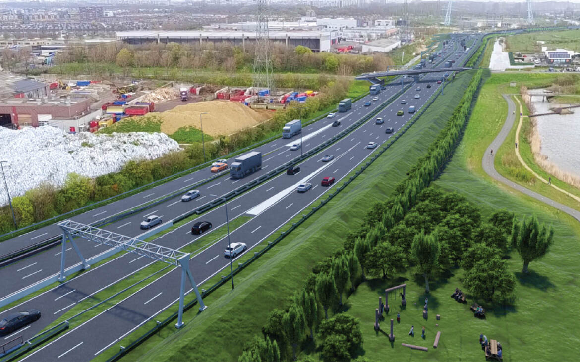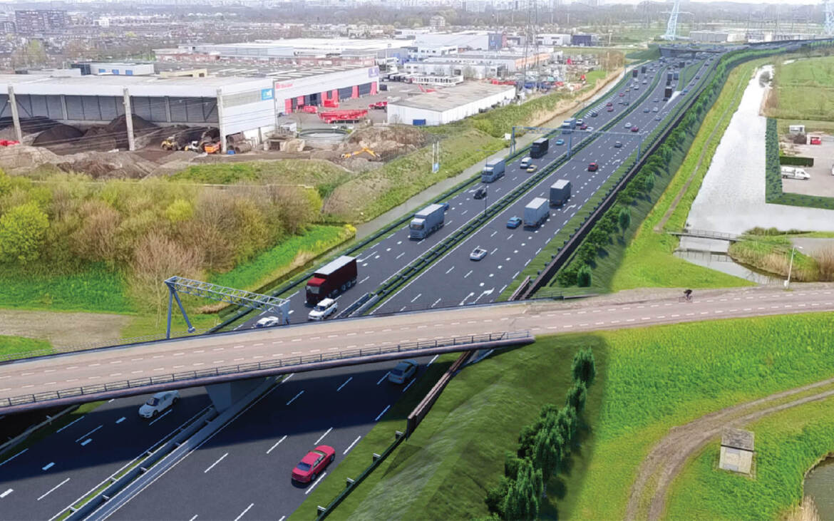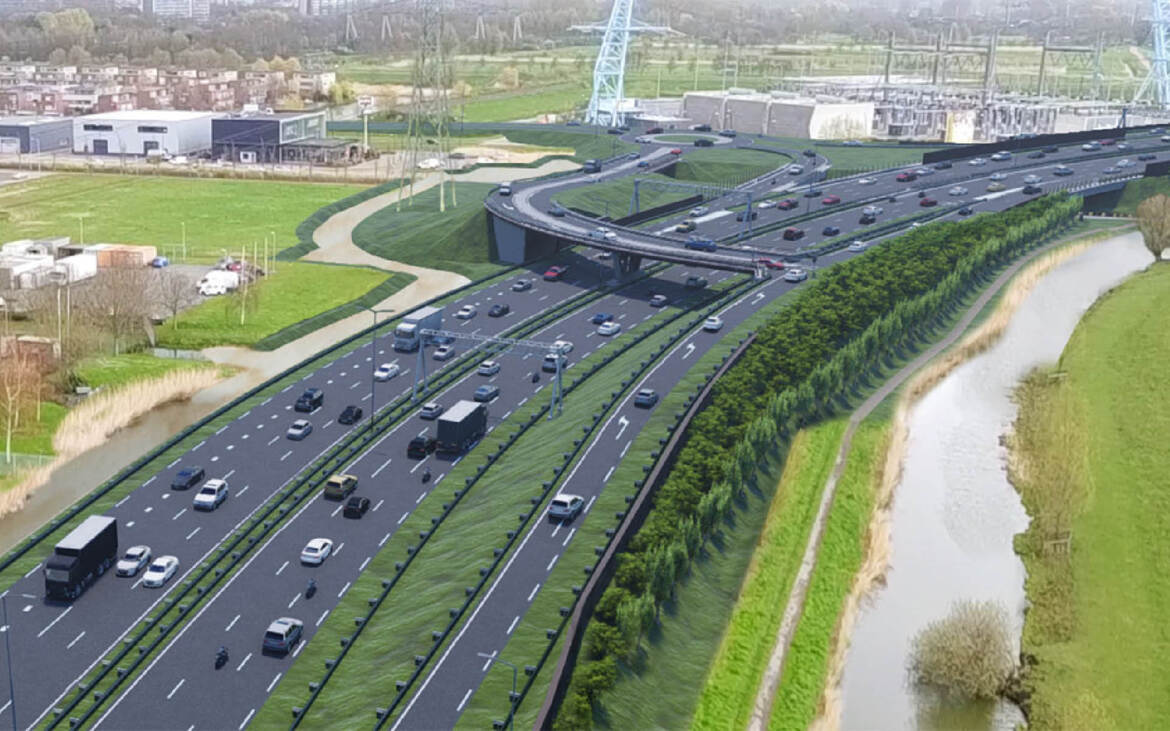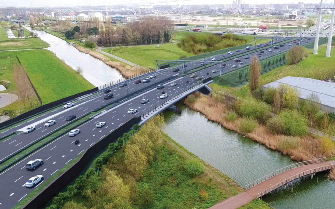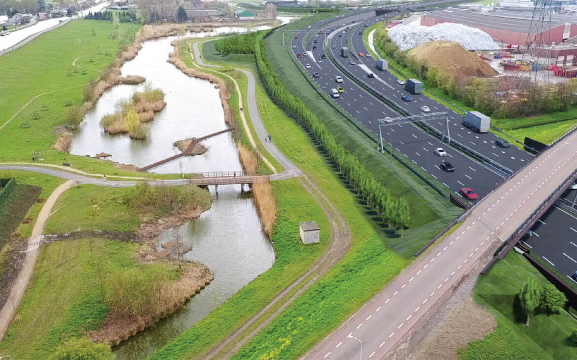 - Op de kunstwerken over kruisende structuren zijn de geluidschermen transparant uitgevoerd, zoals bij kruising met de Zweth. Hiermee blijft de bestaande zichtlijn langs de Zweth behouden en wordt de barrièrewerking van de weg op de omgeving beperkt. Met een transparant scherm kan de lichtinval op de onderdoorgang worden behouden.