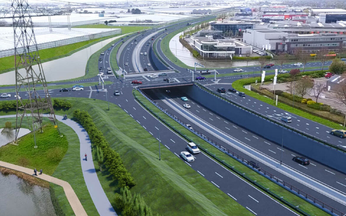 - De taluds/grondkering en het kunstwerk met geluidwerende voorzieningen en balustrade vormen één geheel. De keerwanden en geluidwerende voorzieningen op de ongelijkvloerse kruising N211 en N222 worden hiertoe geïntegreerd, in een aaneengesloten en doorlopende wand.
