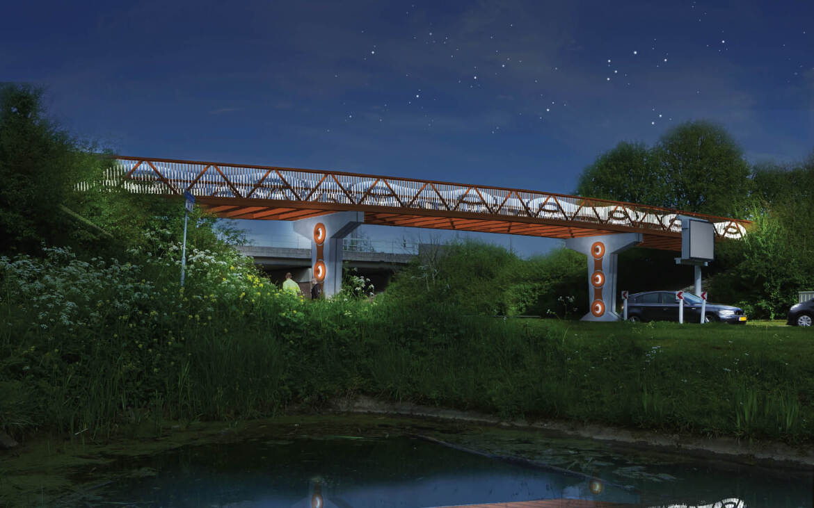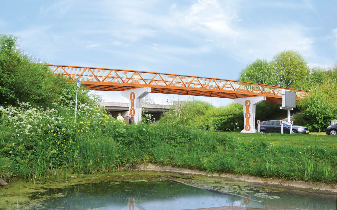 Het fietsviaduct in Westervoort vervangt de bestaande brug en maakt onderdeel uit van snelfietsroute De Liemers. De brug vormt door het opvallende ontwerp een herkenningspunt voor de passant, een eigentijds viaduct in het landschap van de snelfietsroute. De bestaande pijlers en landhoofden worden gehandhaafd, het betaande brugdek vervangen door een brugdek van vezel versterkt kunststof. De vakwerkligger als onderdeel van de leuning maakt het mogelijk om een zeer slank dek te maken waardoor onder meer de hellingen worden geminimaliseerd. In de leuning van het fietsviaduct is LED-lijnverlichting opgenomen waardoor de karakteristieke ketting ‘s avonds opgloeit.