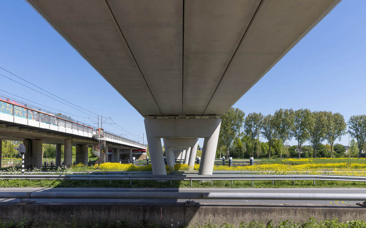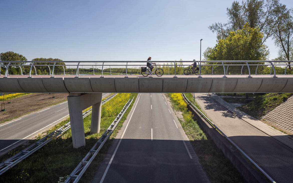 Het Spoorbaanpad is een fietssnelweg in Almere. Het Spoorbaanpad is 12 km lang en daarmee een van de langste fietspaden van Nederland. Het pad is in de jaren '80 aangelegd langs de spoorbaan, waar het zijn naam aan dankt. De nieuwe fietsbruggen over de Hoge en Lage Vaart liggen naast de spoorbruggen. De hoofddraagconstructie is uitgevoerd in prefabbeton. De randschorten hebben een afgeronde vorm die doorloopt in het hekwerk van thermisch verzinkt staal. De tussensteunpunten van beton versmallen enigszins naar beneden toe en versterken daarmee het beeld van een ranke en elegante brug over het water.