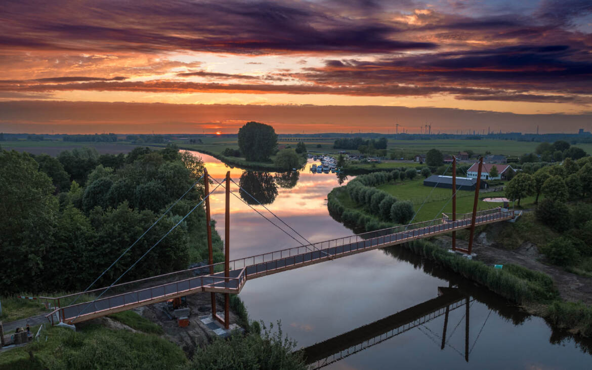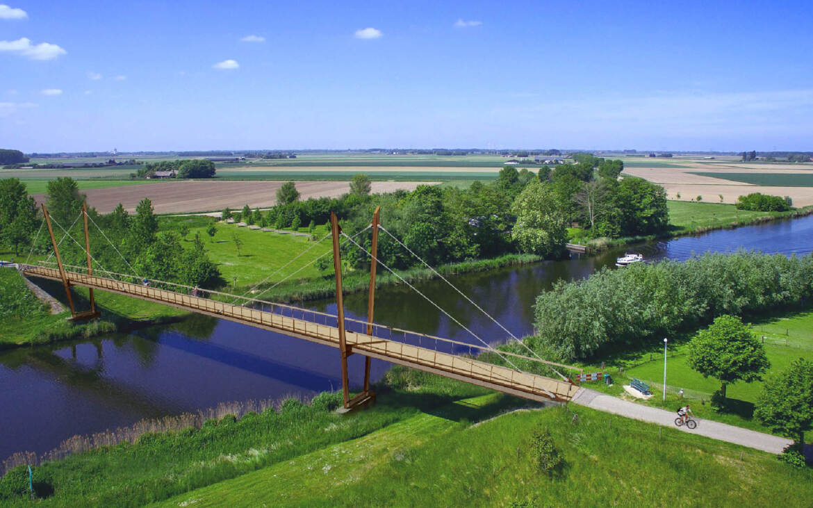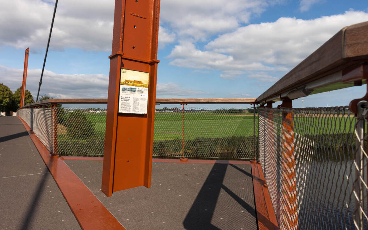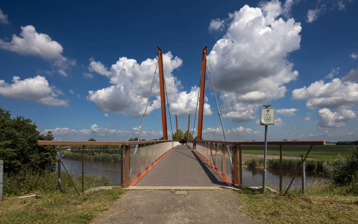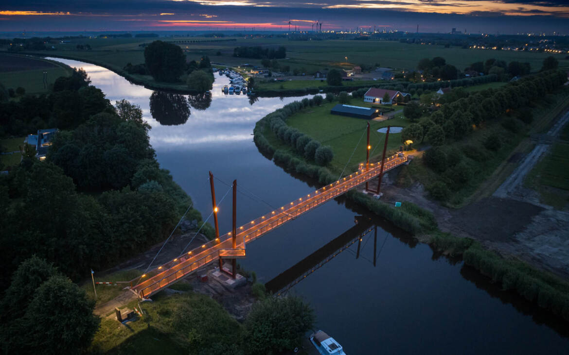 In de basis is het ontwerp van de brug op een sobere en functionele wijze opgezet en maakt de oversteek op de meest efficiënte wijze door middel van een stalen tuiconstructie op basis van de bestaande funderingspunten. Het ontwerp is een eigentijdse versie van de oude brug met een elegantere en transparantere en circulaire vormgeving en detaillering maar met behoud van het silhouet en kwaliteiten als landmark. De brug heeft een recreatief karakter door de veelvuldige toepassing van hout in de afwerking die het verblijf op de brug aangenaam maken: een houten dek, een houten invulling van de pylonen en een houten handregel die plezierig is om vast te houden en op te leunen. Leunend op de handregel kunnen de gebruikers genieten van het spectaculaire uitzicht over het landschap. De transparante vormgeving van de leuning versterkt de beleving dat men één geheel vormt met de prachtige groen-blauwe wereld van de rivier. Enkele goene led-spots zorgen voor een subtiele verlichting van de binnenzijde van de pylonen waarmee de brug ook in de avond zichtbaar is. De brug bestaat voor maar liefst voor 80% uit hergebruikte materialen.
