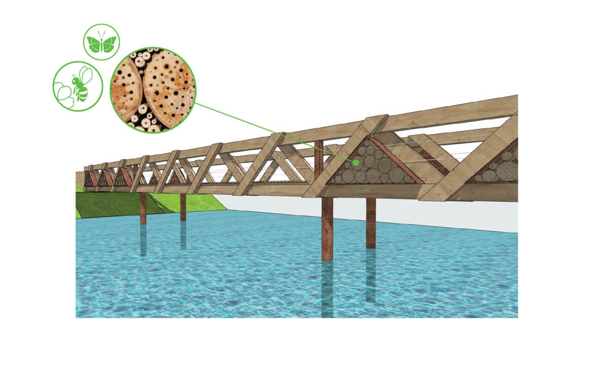 BioFrame is een breed toepasbaar klimaatadaptief en natuurinclusief concept dat een positieve bijdrage levert aan de biodiversiteit op een specifieke locatie. Het draagt bij aan een gezonde leefomgeving waarbij hittestress wordt vermeden. Het modulaire frame kan afhankelijk van de gestelde eisen aan esthetische kwaliteit, functie, onderhoud en duurzaamheid worden gematerialiseerd in een biobased materiaal of een ander stevig en puur materiaal als bijvoorbeeld cortenstaal. BioFrame is geschikt voor de toepassing van verticaal groen waarbij de klimplanten wortelen in de volle grond. Het opgenomen groen, zitelementen, nestkasten en bijenhotels maken het frame locatiespecifiek. Het element kan hierbij deels of volledig worden ingezet als zonwerende schil. BioFrame is zowel toepasbaar in de infrastructuur voor bijvoorbeeld een brugleuning of als tweede huid in de gebouwde omgeving.