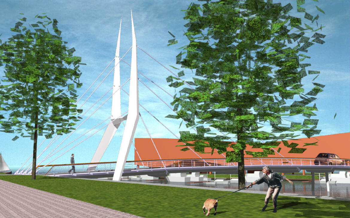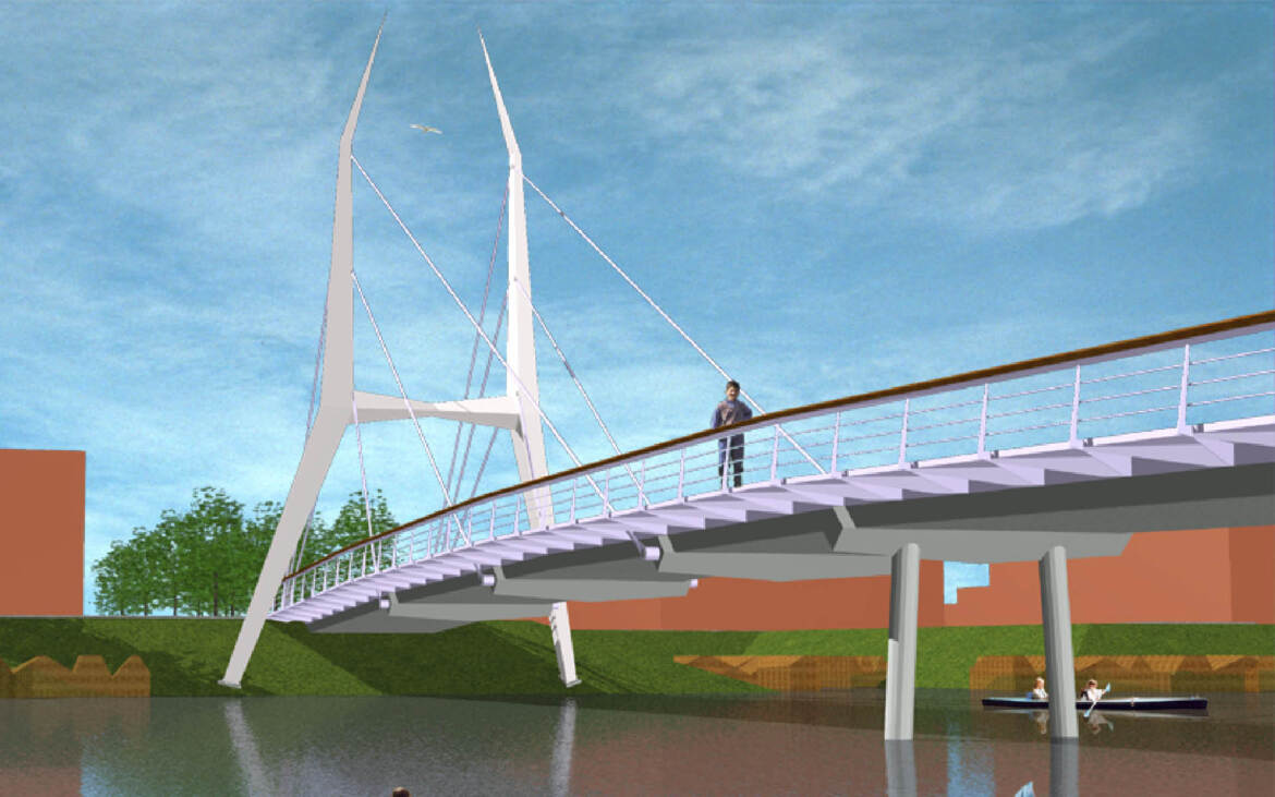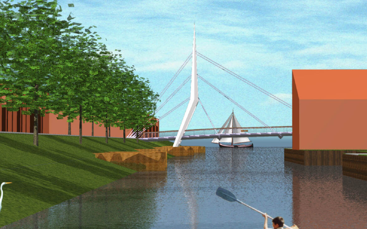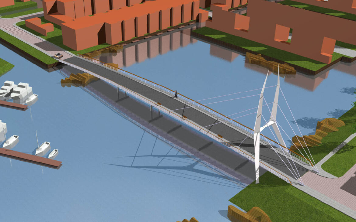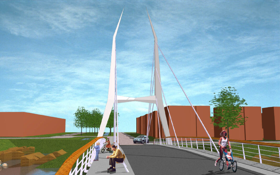 Midden in de wijk De Groote Wielen in Den Bosch komt een nieuwe brug die als landmark zal fungeren in dit waterrijke gebied. De stalen pyloon van de tuibrug staat als een gestileerde zilverreiger op de oever van het kanaal. De totale lengte van de brug is 100 meter. De helft daarvan is uitgevoerd met betonnen prefabliggers en pijlers, de andere helft is tuiconstructie in staal. Midden op de brug zijn enkele zitelementen geplaatst: hier is een belvédère gecreëerd met uitzicht op de Centrale Plas van De Groote Wielen.