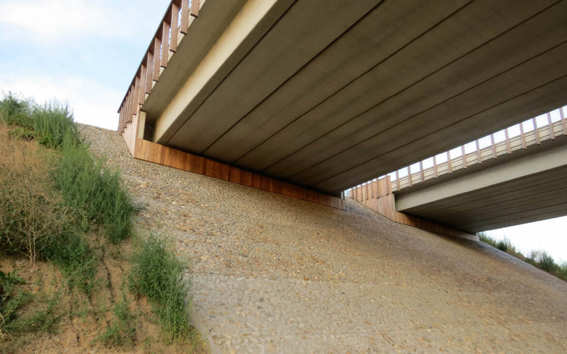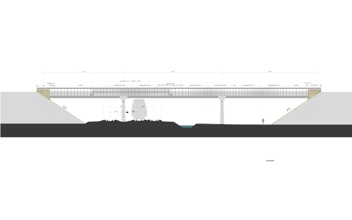 De Floriade 2012 in Venlo is ontsloten door een nieuwe weg: de Greenportlane. Voor deze verkeersader is een familie van kunstwerken ontworpen waaronder dit viaduct over een spoorlijn. Kenmerkend voor de kunstwerken is toepassing van houten leuningen, natuurlijke taludverhardingen en de integratie van de weg in het landschap. De viaducten zijn ontwikkeld op basis van de Cradle-to-Cradle filosofie (C2C).