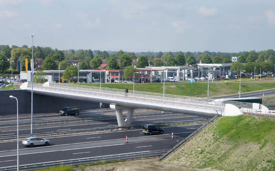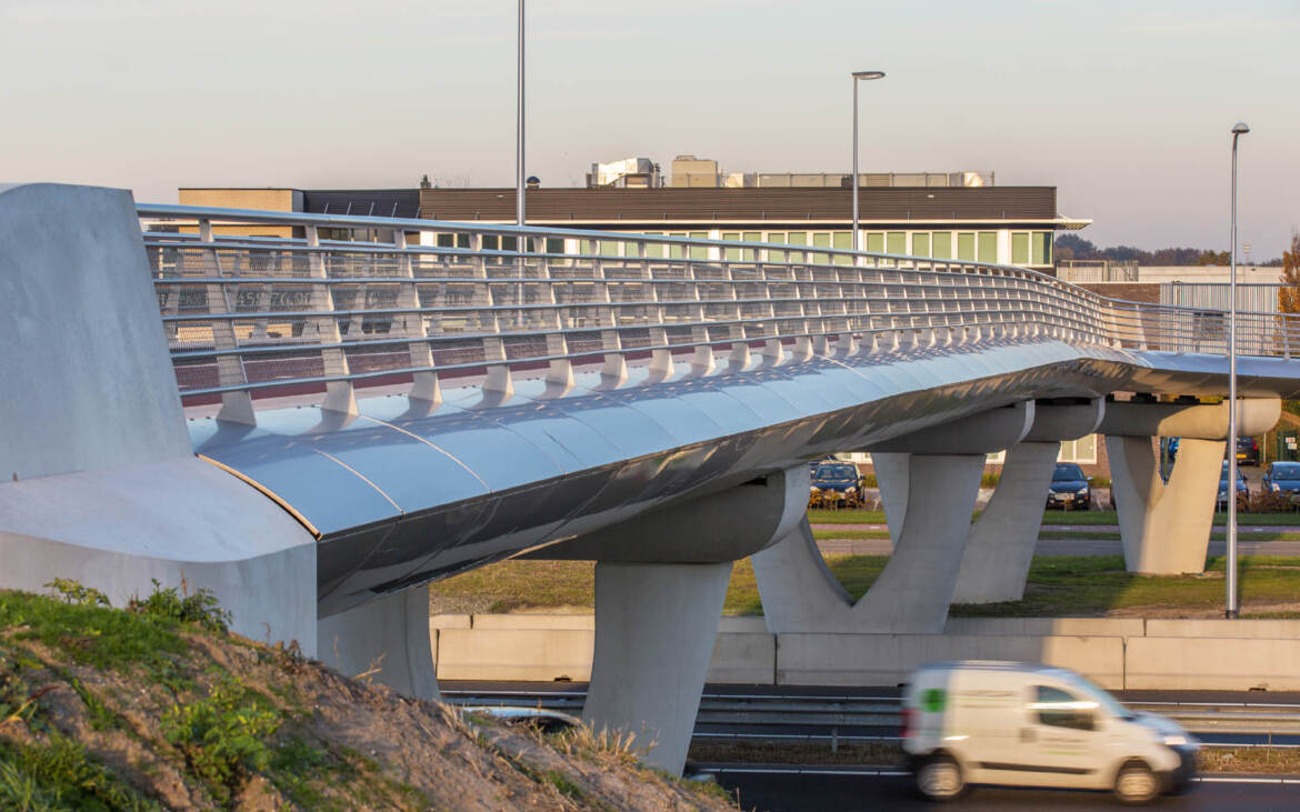 De V-bruggen vormen onderdeel van de nieuwe Dreamportlane N261 met ongelijkvloerse kruisingen, ook wel de Eftelingweg genoemd. De randen en ondersteuning van de fietsbruggen hebben een karakteristieke V-vorm met een scherpe knik, ze maken het kunstwerk visueel ranker.