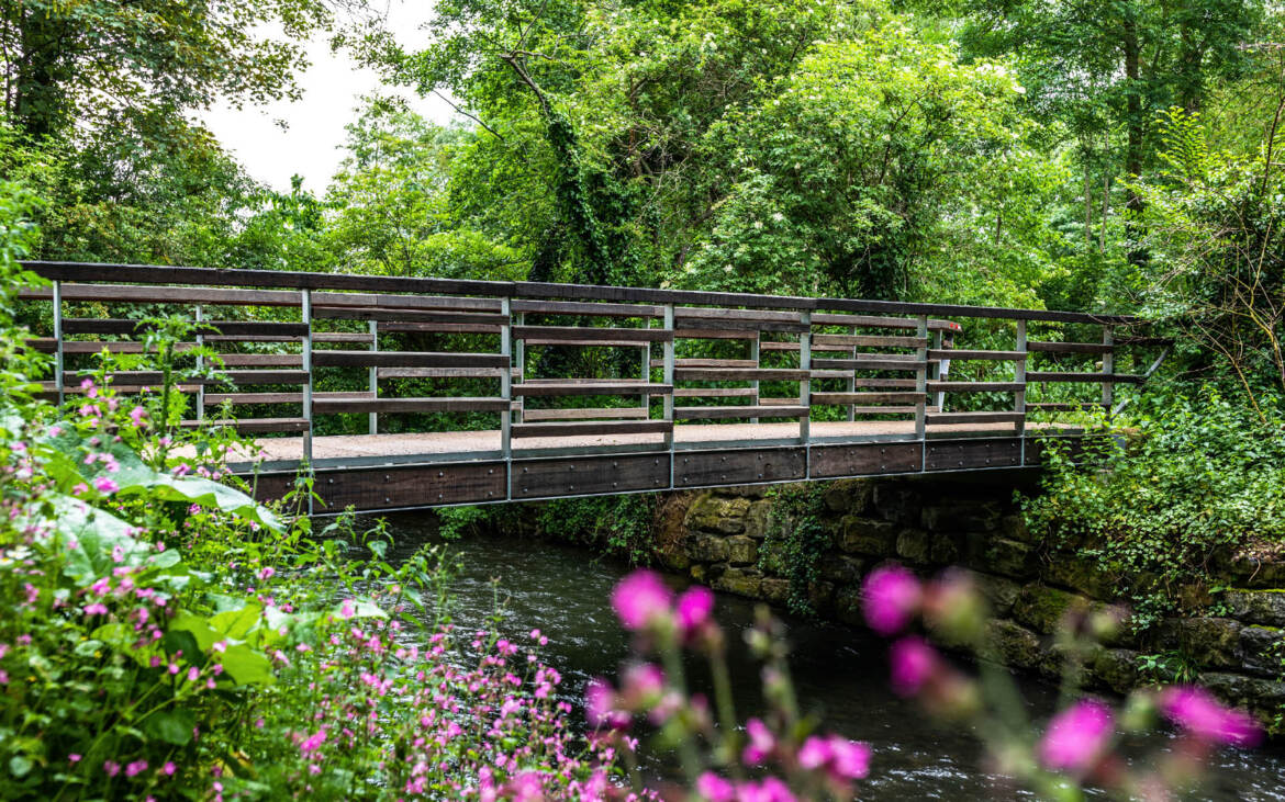 De houten schil vormt de identiteit van de GeulBruggen. De willekeurig geplaatste lamellen in de leuning bieden enerszijds een transparant zijaanzicht met goede doorzicht, op de brug zelf ontstaat een meer gesloten beeld als de bast van een stam. De houten onderdelen van de bruggen bestaan uit hergebruikt en herzaagd hardhout afkomstig uit te vervangen houten bruggen. Met deze duurzame en innovatieve toepassing krijgt het materiaal hout door upcyclen een derde leven.