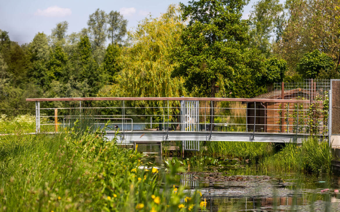 De LingezegenBrug is een kleinschalige stalen voetbrug met een GVK dek die een woonwijk in Bemmel verbindt met het achterliggende landschapspark Park Lingezegen. Het ontwerp van de transparante brug met een rechtlijnige oversteek heeft een organisch karakter door een subtiel spel in de vormgeving van de uitbollende ranke balusters in combinatie met de FSC houten bovenregel.